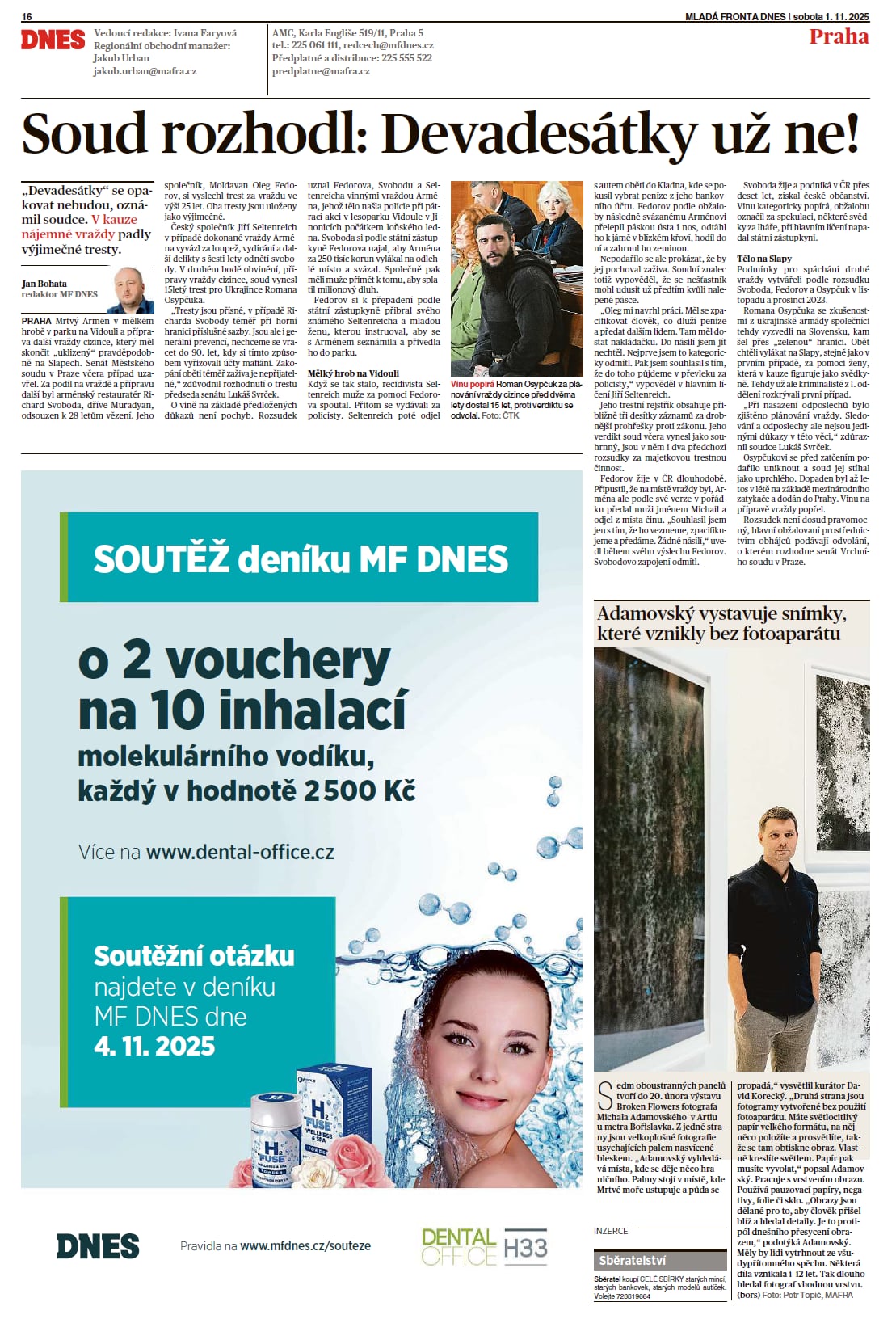 Soutěžní otázka vyšla v tištěném vydání MF DNES dne 4. listopadu 2025, a zněla: „V jakém roce byla založena zubní klinika Dental Office H33?“ Správná odpověď byla a) 2010.
